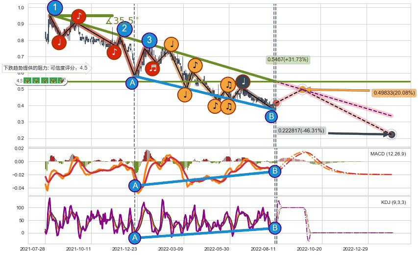 ➢ 预测:2022-09-22,【小幅反弹】稳定目前下跌趋势的前提下,预测价格:0.49833