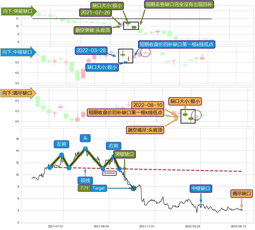 ➢ 2022-08-10形成:向下跳空【竭尽】缺口