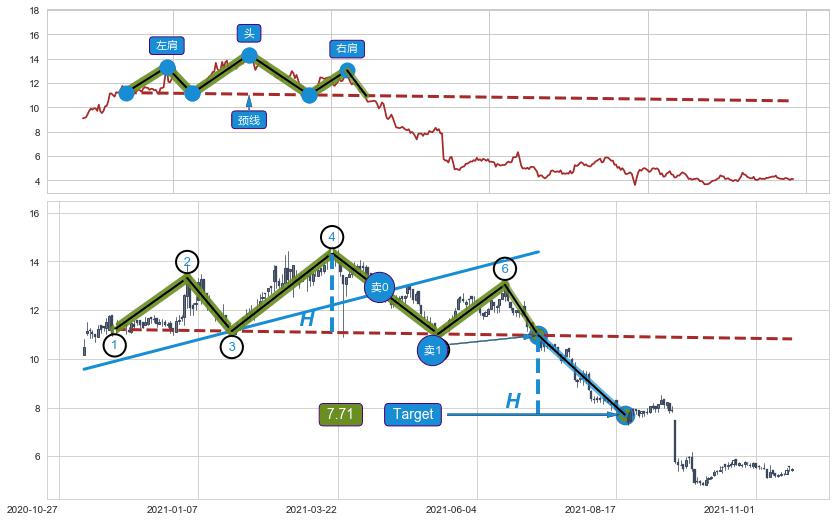➢ 【已确认突破】头肩顶 起点:2020-10-15,突破点:2021-07-08,形态共180交易日