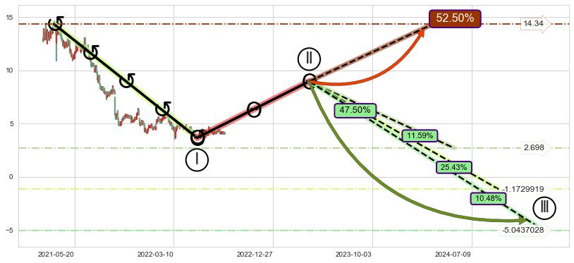 ➢ 高概率大级别循环下跌浪被破坏,反转向上(突破5浪起点)概率52.50%