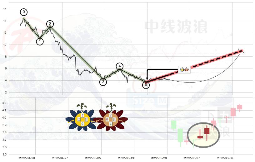 ➣ 锤头线(锤子线) + 波浪理论下跌浪:浪5反弹拐点信号叠加后【反向回撤率】极低,【看多】信号叠加【存续影响极大】