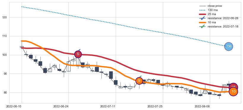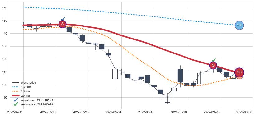 ➣ 历史趋势中共发现17处重要支撑阻力位,其中关键支撑位8处, 关键阻力位9处