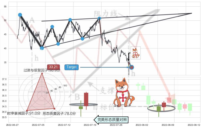 ♘ 阻力价格位39.05,可信任强度79.45%,距离最后交易2022-08-12形成的收盘价格34.10相差 +14.53%