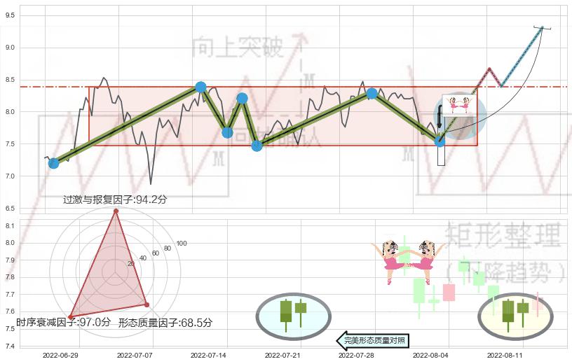 ➢ AI智能: 预测【空方力量耗尽】,矩形中继整理向上突破,预测将在2022-08-29突破矩形提供的颈线