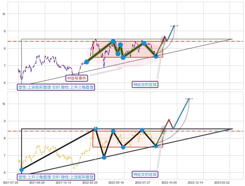 ➢ 上涨矩形整理属【短级别信号事件】缠论中枢点属【长级别信号事件】长短周期组合信号事件, 短长事件长度比30.59%