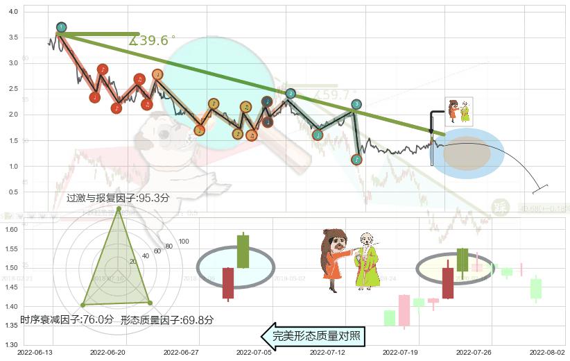 从2020-08-20至2022-03-14,共包含386个交易日,阶段股价下跌-86.33%,阶段股价变动位移路程比: 1 : 9,下跌趋势角度: 39.6