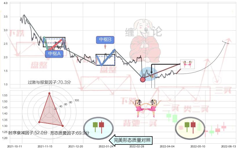 ➣ 缠论买卖点:下降缠中枢AB形成后猜想拐点1买已到达,猜想后续持续拉升(均值回复)