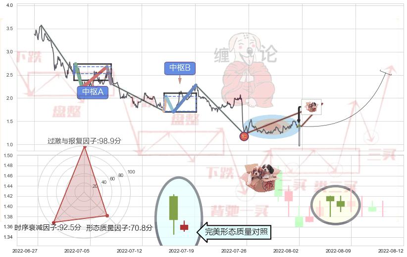 ➢ 🕰 价格走势在2022-08-05至2022-08-08期间形成底部尽头线(上山虎),残存影响值:2.88