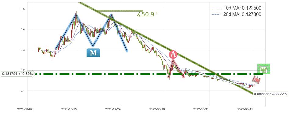 ♘ 阻力价格位0.181754,可信任强度88.27%,距离最后交易2022-08-12形成的收盘价格0.129000相差 +40.89%