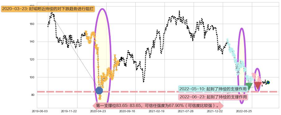 ♘ 支撑价格位83.65,可信任强度67.90%,距离最后交易2022-08-12形成的收盘价格94.05相差 -11.05%