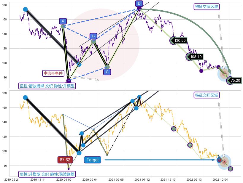 ➢ 谐波蝴蝶:d下跌即将临近第❸目标:猜想支撑拉升 → 上涨 →【拐点】机会信号 → 大趋势均值回复