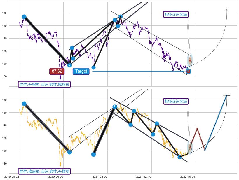 ➢ 升楔型:猜想下跌target达成后 → 上涨 → 机会信号 → 大趋势均值回复