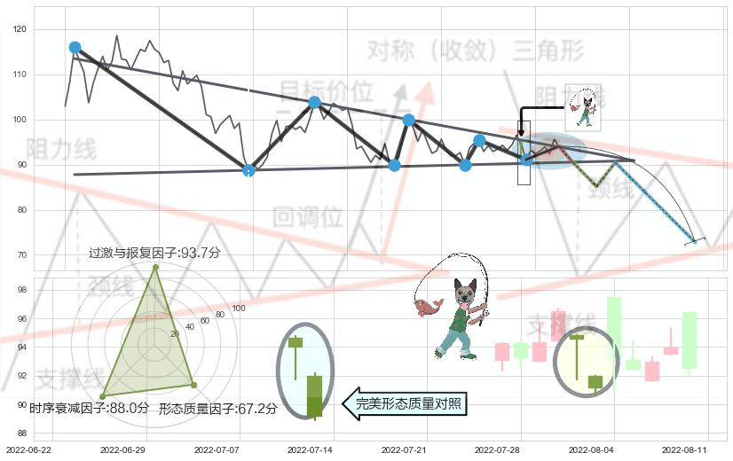 ➣ 【未确认突破,预测即将形成突破】下降【对称】三角形整理起点:2022-03-10, 预测突破点:2022-08-17,形态共107交易日