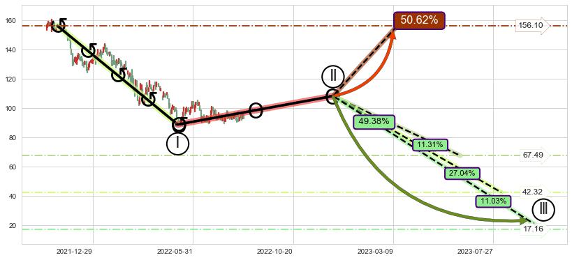➣ D点拟合预测价格98.46,距离最后交易收盘价格94.05相差 +4.69%