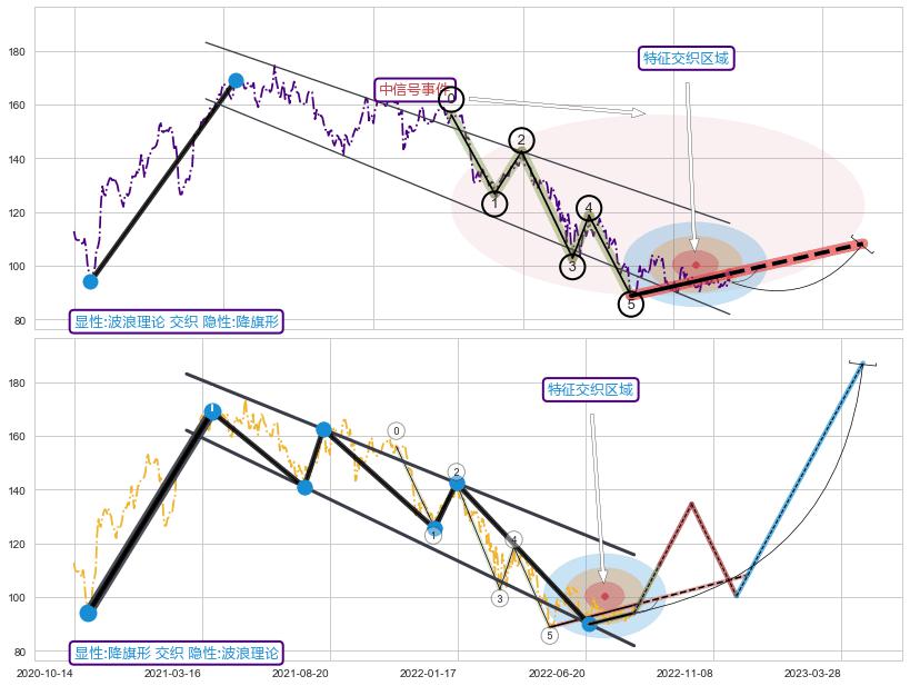 ➢ 波浪理论属【中级别信号事件】降旗形属【长级别信号事件】中长周期组合信号事件,中长事件长度比43.69%