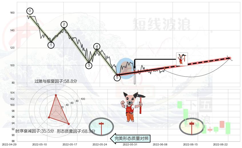 ➢ 锤头线(锤子线) 🔜 波浪理论下跌浪:浪5反弹拐点 综合量化分数:53.38 【中性】