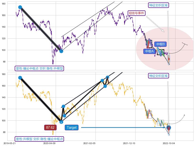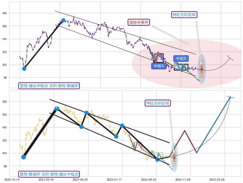 ➢ 缠论中枢点属【短级别信号事件】降旗形属【长级别信号事件】长短周期组合信号事件, 短长事件长度比27.80%