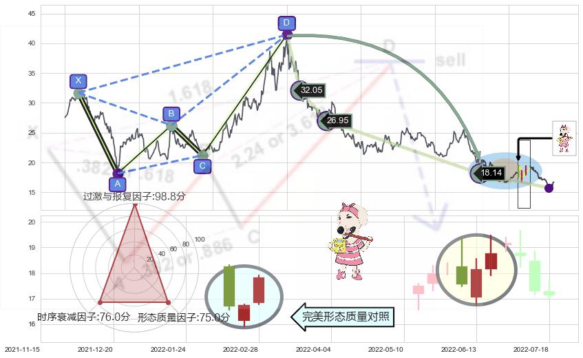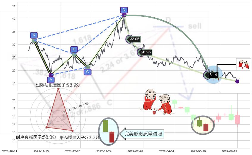➢ 上涨孤独十字星 🔜 谐波螃蟹目标❸拐点支撑上涨 综合量化分数:53.40 【中性】