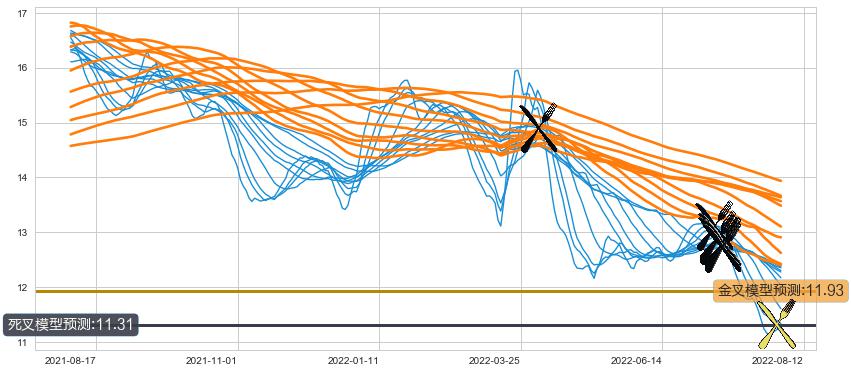 ➣ 34小时均线于(2022-07-14: 12.81)形成【死叉】基于【死叉历史模型】预测死叉后最低波谷价格: 11.29, 死叉后最低价格10.92,已经下跌超出预测最低波谷价格, 预期反弹