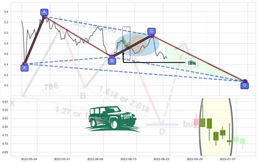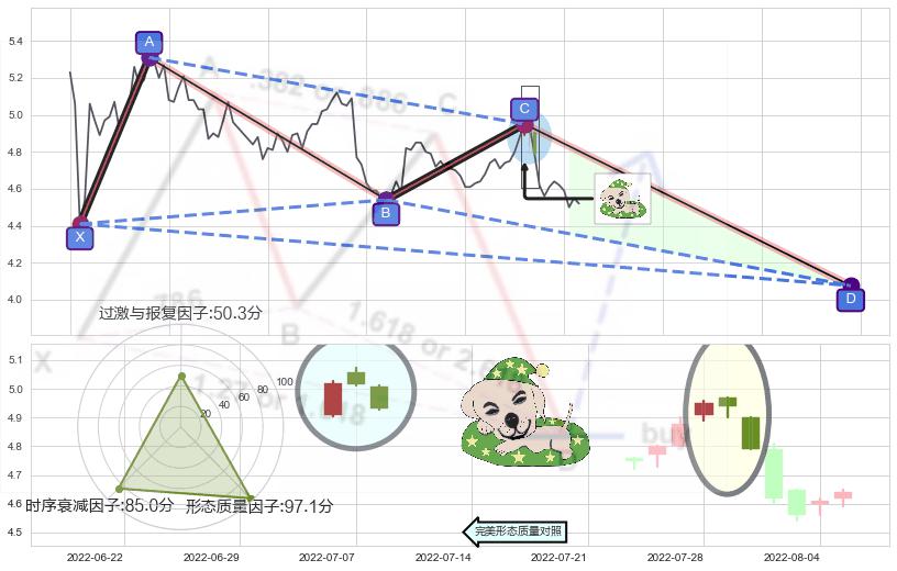 ➣ 未完成【蝴蝶】形态起点X: 2022-03-15, 已到达C点: 2022-07-28, 预测最终D点: 2022-10-28, 共155交易日