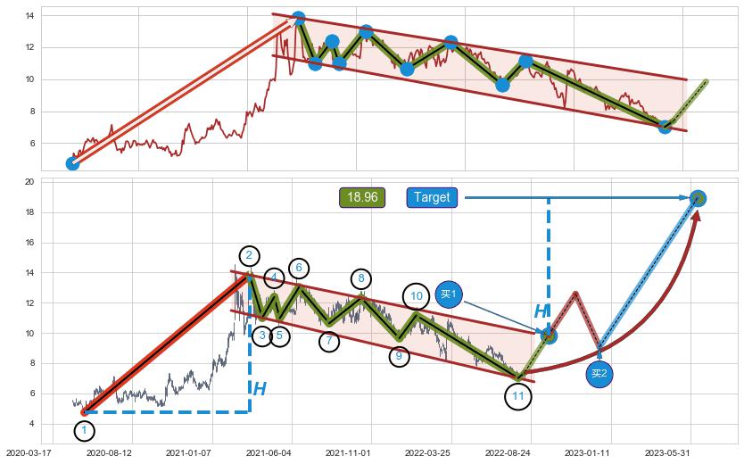 ➣ 最小中继整理涨幅→𝐇: 9.11 (𝐇旗杆的长度:旗杆起点→顶点)