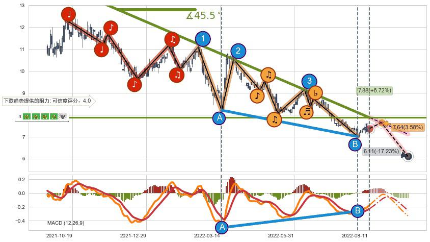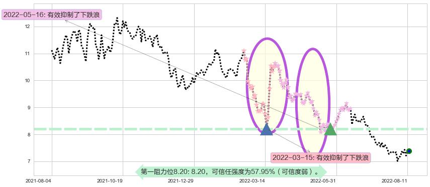 ♘ 阻力价格位8.20,可信任强度57.95%,距离最后交易2022-08-12形成的收盘价格7.38相差 +11.15%