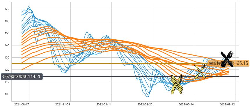 ➣ 34小时均线于(2022-08-11: 127.77)形成【死叉】基于【死叉历史模型】预测死叉后最低波谷价格: 113.20, 死叉后最低价格127.50,尚未达到预测最低波谷价格, 预期继续下跌