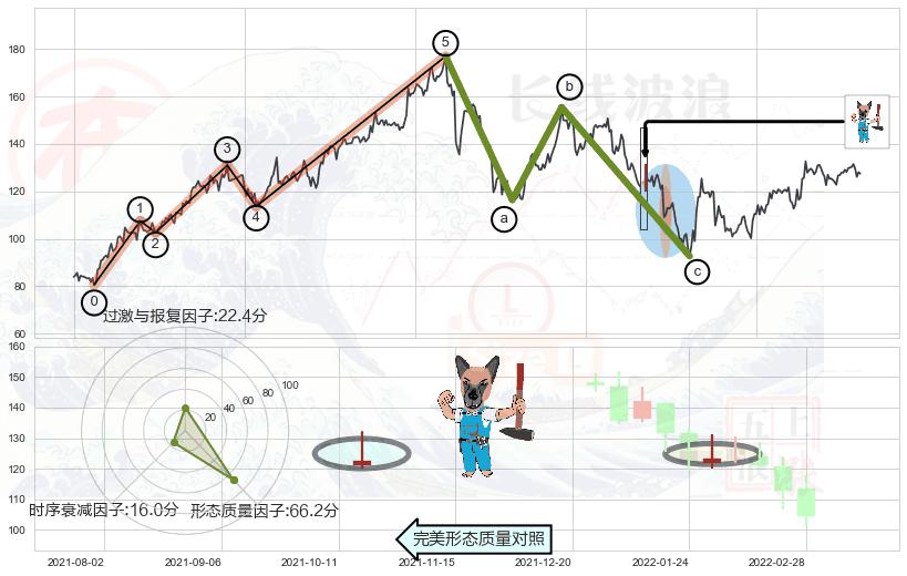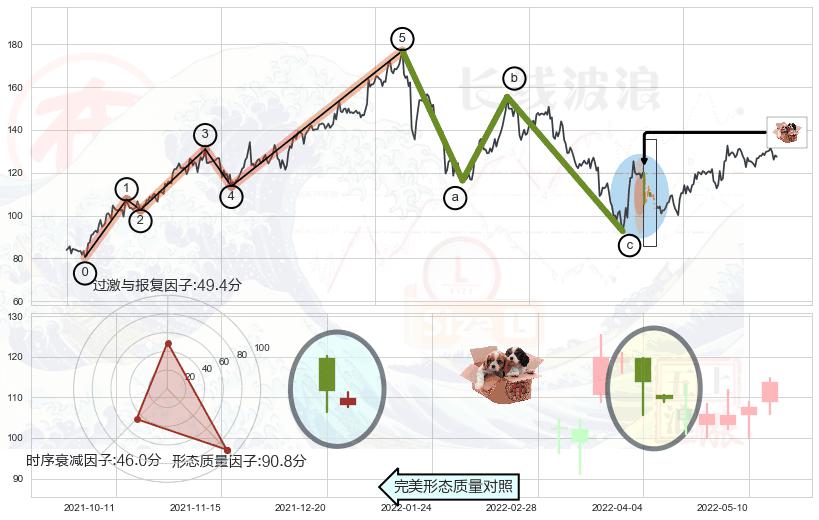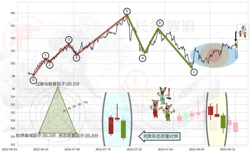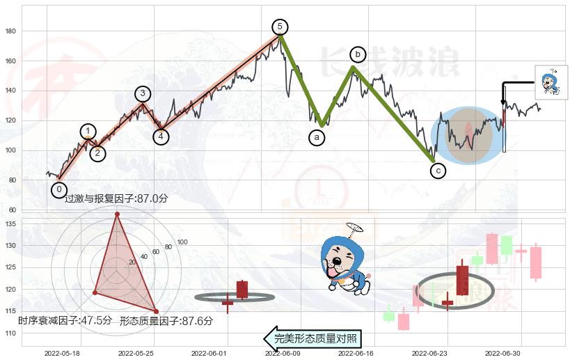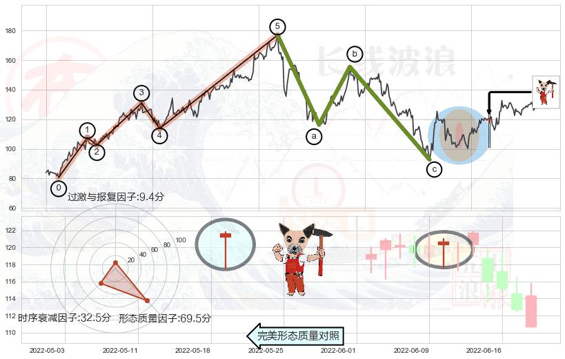 ➣ 中流砥柱形态 + 波浪理论c点回调终止反转上涨信号叠加后【反向回撤率】低,【看多】信号叠加【存续影响大】