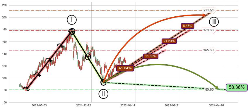 ♘ 支撑价格位91.78,可信任强度94.76%,距离最后交易2022-08-12形成的收盘价格127.50相差 -28.01%