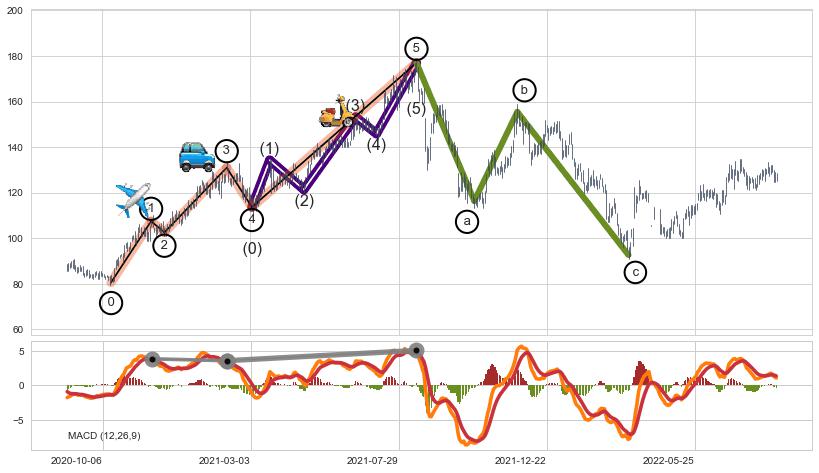 ➣ 第一, 三, 五浪上涨动能逐渐【衰弱变小】,趋势呈现不稳迹象