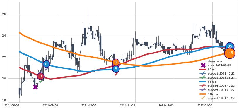 📝 多条均线形成死叉后走势最低价格达到: 1.8300