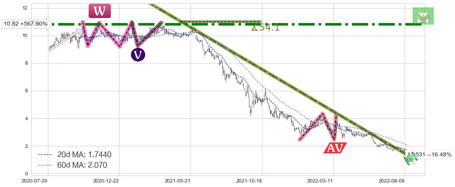 ♘ 阻力价格位10.82,可信任强度99.00%,距离最后交易2022-08-12形成的收盘价格1.6200相差 +567.90%