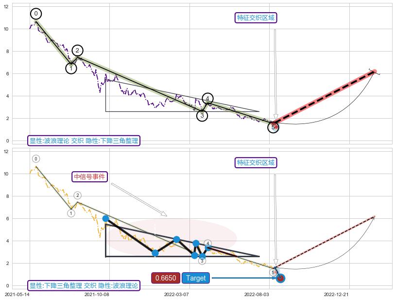 ➢ 下降三角整理属【中级别信号事件】波浪理论属【长级别信号事件】中长周期组合信号事件,中长事件长度比55.00%