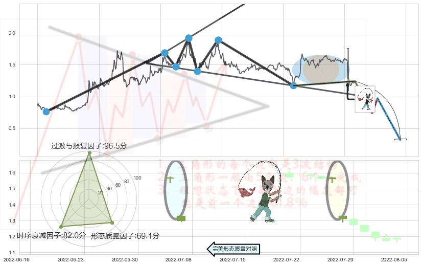 ➢ 🕰 价格走势在2022-07-27至2022-07-28期间形成吊颈线(上吊线),残存影响值:-4.13