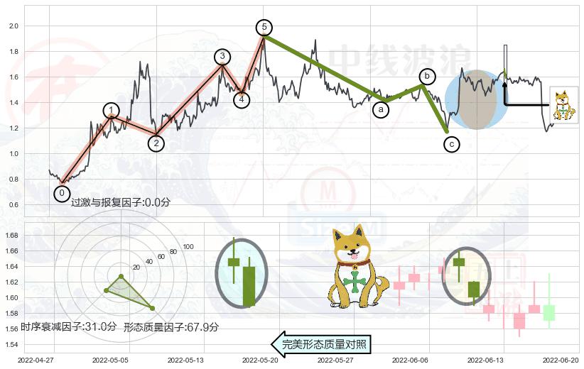 ➢ 看跌(高位倒锤头)流星线 🔜 波浪理论击穿破位C点继续下跌 综合量化分数:47.95 【中性】
