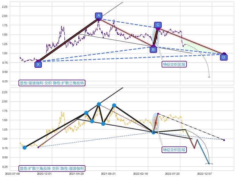 ➢ 谐波伽利与扩散三角反转信号事件周期长度级别相同,同周期信号事件