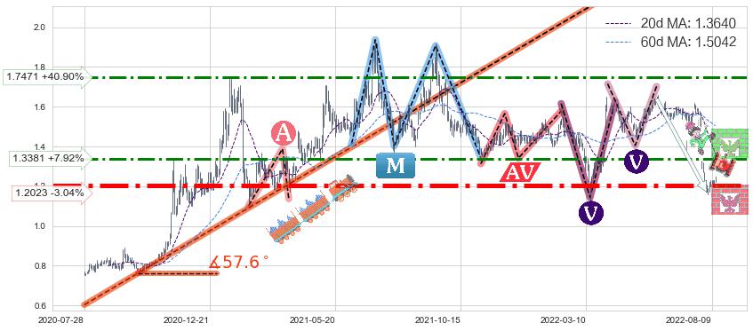 ♘ 阻力价格位1.7471,可信任强度66.33%,距离最后交易2022-08-12形成的收盘价格1.2400相差 +40.90%