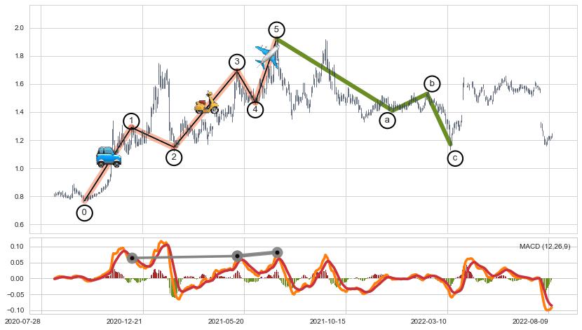 ➣ 波浪理论:猜想达到c点后小回调终止反转上涨 → 上涨 → 【拐点】临近 → 阶段均值回复结束后继续大周期趋势跟踪