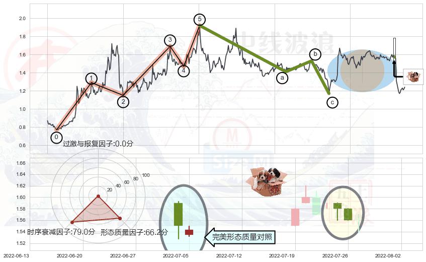 ➢ 🕰 价格走势在2022-07-25至2022-07-26期间形成底部尽头线(上山虎),残存影响值:1.23
