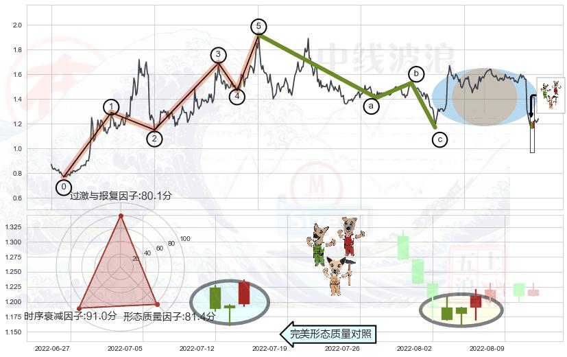 ➢ 🕰 价格走势在2022-08-08至2022-08-08期间形成下降插入线(坠落线),残存影响值:-8.87