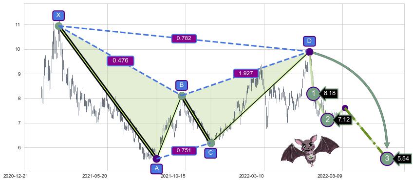 ➣ 已完成【蝙蝠】形态起点X: 2021-02-17, 终点D: 2022-06-09, 共321交易日