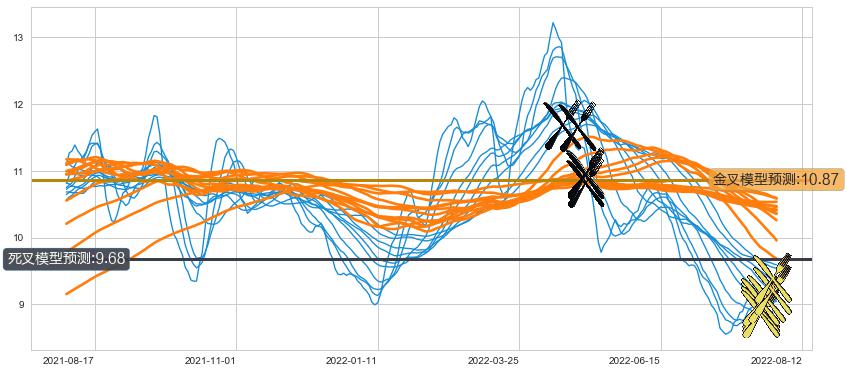 ➢ 60小时均线于(2022-04-29: 11.65)形成【死叉】基于【死叉历史模型】预测死叉后最低波谷价格: 10.37, 死叉后最低价格8.19,已经下跌超出预测最低波谷价格, 预期反弹