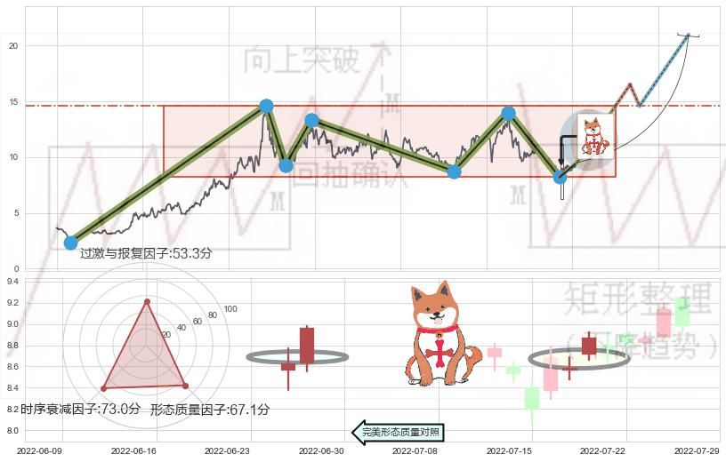 ➢ AI智能: 预测【空方力量耗尽】,矩形中继整理向上突破,预测将在2022-10-14突破矩形提供的颈线