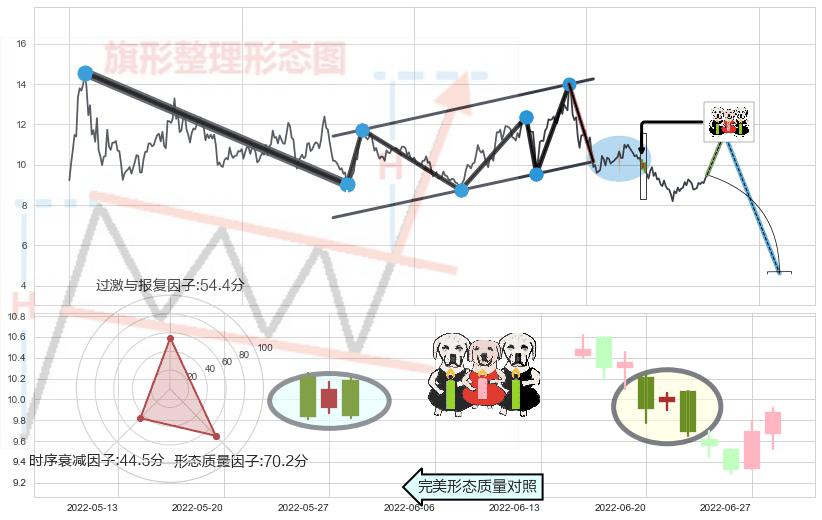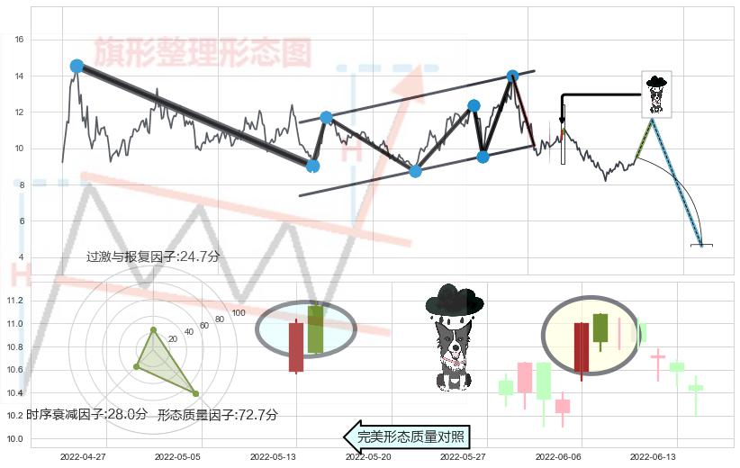 ➢ 下跌螺旋桨 🔜 升旗形支撑破位转换阻力下跌 综合量化分数:43.13 【偏空】