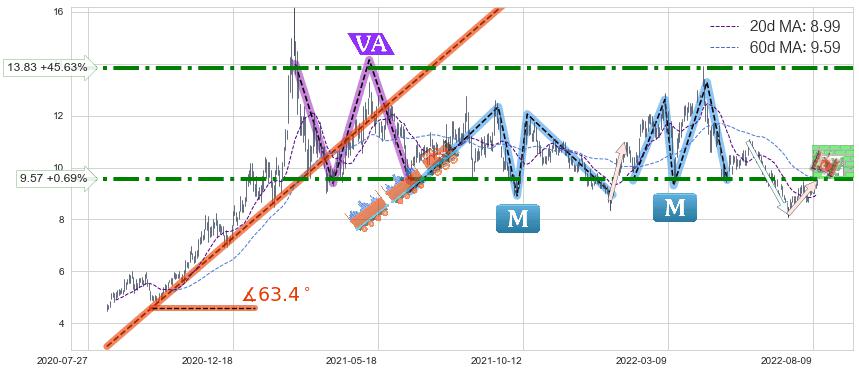 ♘ 阻力价格位9.57,可信任强度75.02%,距离最后交易2022-08-12形成的收盘价格9.50相差 +0.69%