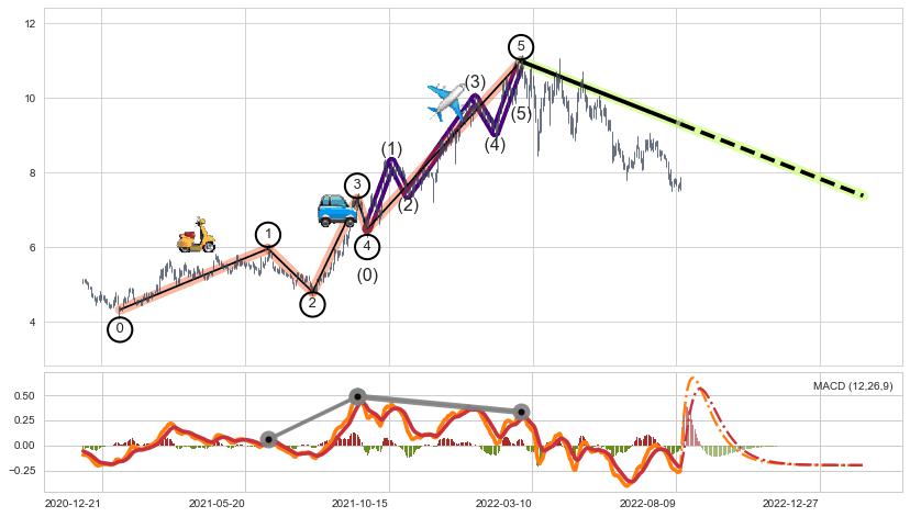 ➢ 波浪理论:猜想止涨 → 下跌 →【拐点】浪5已完成 → 大趋势均值回复