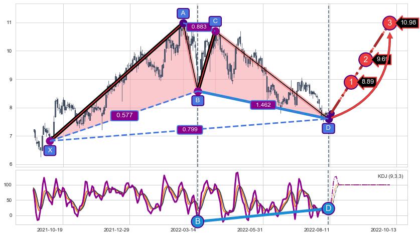 ➢ AI预测: 假定反转如期而至,第❸价格目标位置(2022-10-13, 10.98)