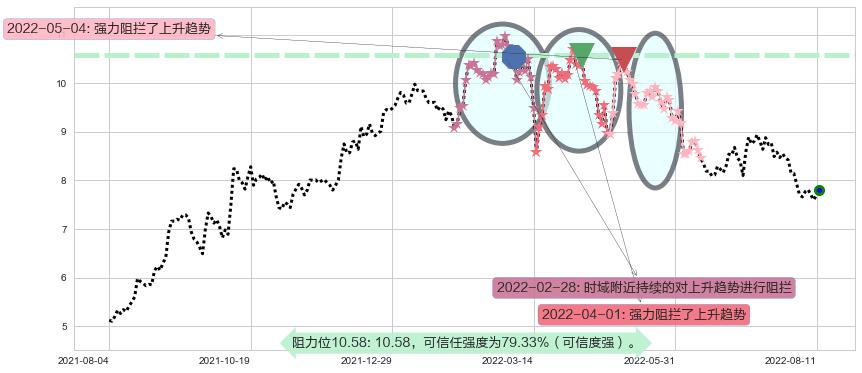 ♘ 阻力价格位10.58,可信任强度79.33%,距离最后交易2022-08-12形成的收盘价格7.80相差 +35.61%