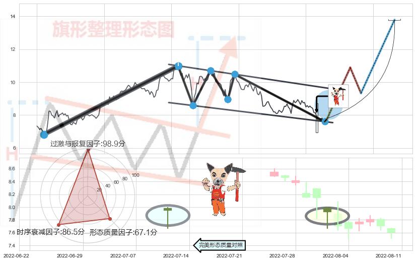 ➣ 【未确认突破,预测即将形成突破】降⚑旗形起点:2021-09-30, 预测突破点:2022-08-26,形态共222交易日