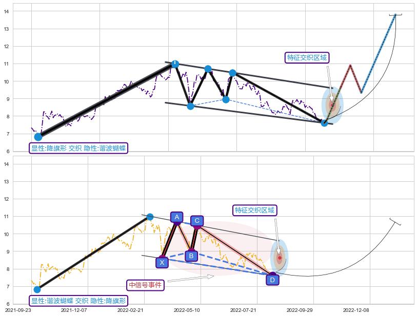 ➢ 谐波蝴蝶属【中级别信号事件】降旗形属【长级别信号事件】中长周期组合信号事件,中长事件长度比46.70%